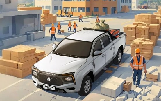 When transporting construction material, the vehicle's loading capacity determines the progress of the project. The BOLDEN S6 features an ultra-long 1.8-meter flat cargo box with an internal width of 1.52 meters, easily accommodating heavy loads such as bundled steel bars and large mechanical parts. Coupled with a high-strength steel roll cage and a coated cargo box protector, it can effectively reduce cargo box wear and tear, even when transporting sharp items like crushed stone and steel pipes, extending its service life. The chassis system is also a 'hero' in carrying capacity, adopting a body-on-frame structure with more than 50% of the vehicle composed of high-strength steel, using a high-strength frame and reinforced rear leaf spring suspension, ensuring every load becomes a solid accumulation on the path to making wealth.