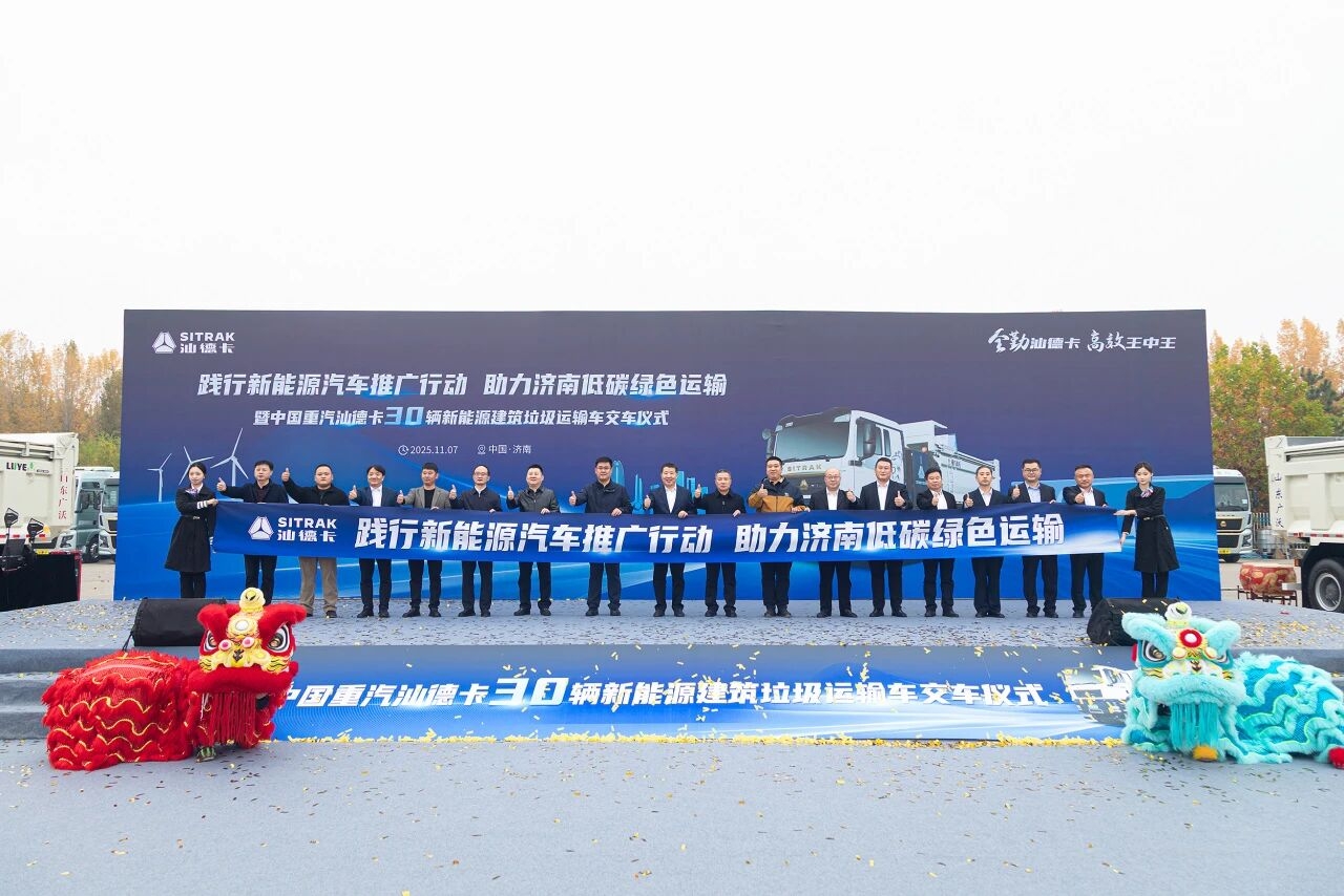 ??11月7日,“踐行新能源汽車推廣行動 助力濟南低碳綠色運輸暨中國重汽汕德卡30輛新能源建筑垃圾運輸車交車儀式”在濟南商用車制造公司隆重舉行。此次交付不僅標志著中國重汽與濟南盛仕達等三家企業的合作發展邁入新征程,同時為濟南市綠色物流體系建設注入強勁動力。